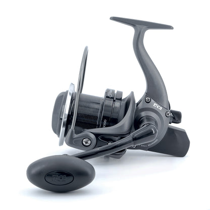 La frizione è costituita da dischi multipli in carbonio e garantisce un sistema di frenata della bobina decisamente potente e progressivo. Le bobine disponibnili in svariate misure, sono realizzate in alluminio leggero, tornito. L’archetto in tubolare è innestato con un sistema conico che evita punti di rottura del filo, che scorre all’interno di un guidafilo anti torsione.